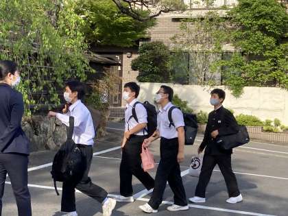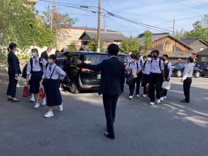 午後4時20分現在、生徒たちは、タクシー班行動を終え、続々と宿泊先に戻ってきています。たくさんの思い出ができたことと思います。とても、いい表情をしていました。