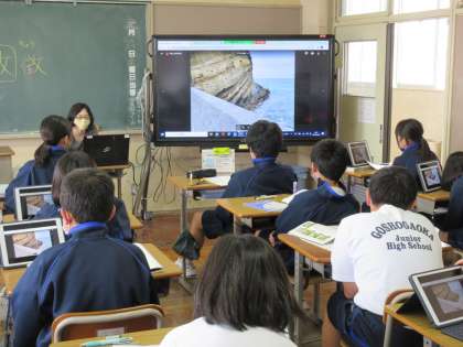電子黒板や手元のタブレットの写真を見て、学習をすすめていました。