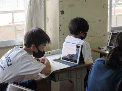 集中して、画像を見る生徒のようすから、タブレットを効果的に活用しているようすが伝わってきました。