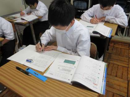 ノートの根気強く計算をしていく生徒のようすが見られました。