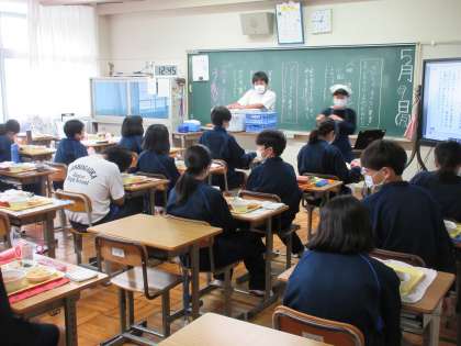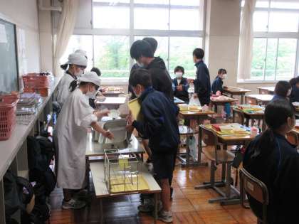 2年生の給食準備を見に行くと、今日もスムーズに行われていました。