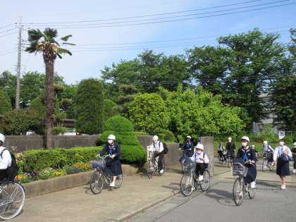 元気よく登校してくる生徒たち。今日も1日、多くのことにチャレンジしてほしいと思います。