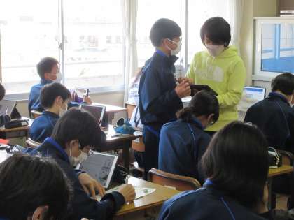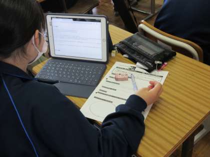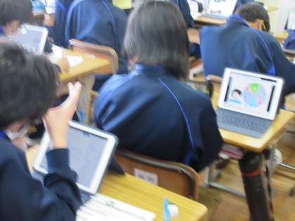 職業について、タブレットを活用し、必要な資格や免許、その職業にどんな人が向いていいるか などについて、熱心に調べる姿が見られました。