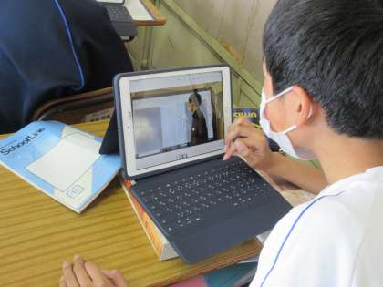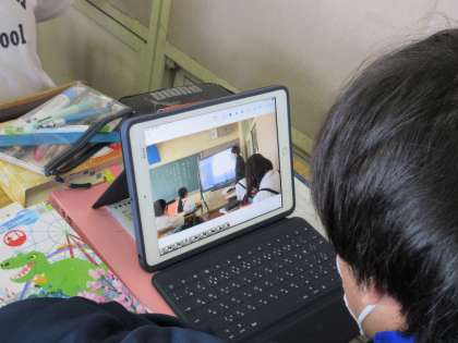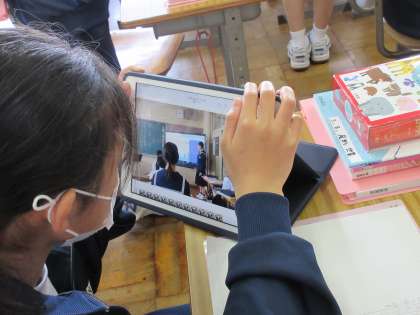 自分達がつくった詩を発表した動画を見て、発表のしかたがどうだったのかを振り返る学習をすすめていました。