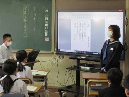 一人一人が作成した詩を、クラス全体に紹介する活動をしていました。