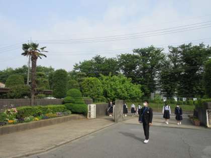 今日の天気は、晴れていますが雲の多い天気です。やや蒸し暑さを感じる1日のスタートとなっていますが、元気に生徒たちは登校してきていました。