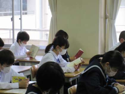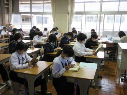 集中して読書をする生徒たちのようすが見られました。落ち着いた雰囲気で1日のスタートを迎えることができるのも、この時間をみんなが大切にしているからだと感じています。