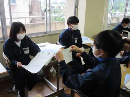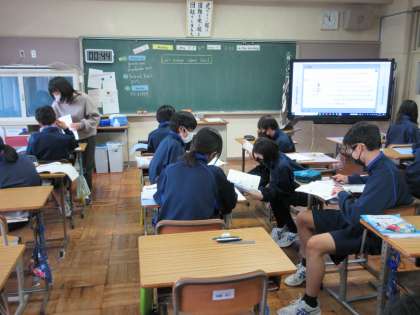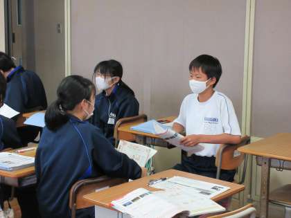 日常の会話について、事例をもとに、英語でコミュニケーションを取る活動に取り組んでいます。