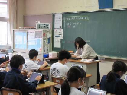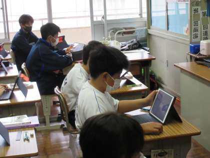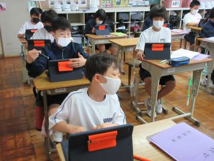 タブレットの問題に意欲的に取り組む生徒たち。しっかりと定着を図っていきたいと思います。