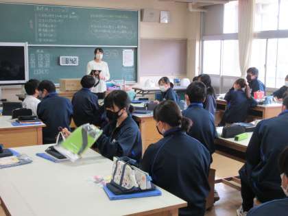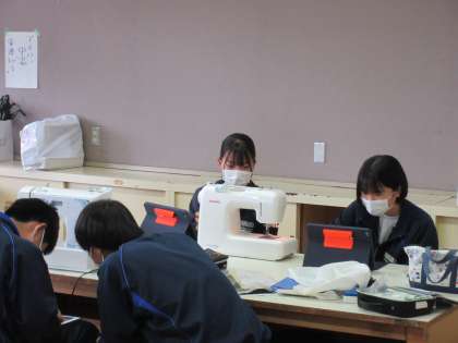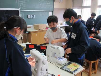 グループごとに、ミシンの使い方を確認しながら、学習をすすめていました。
