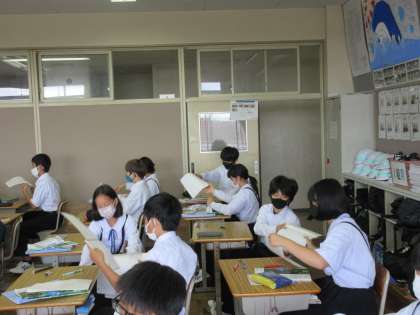 生徒どうしが互いに書いたものをよく確認し、定着を目指しています。