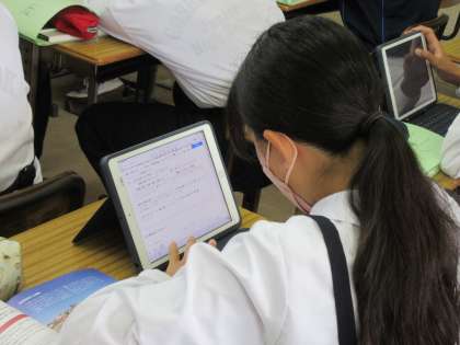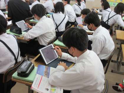 作品に込められた思いをつかもうと頑張っていました。生徒たちの会話から、「これは弦楽器だ!」などの会話が聞こえてきました。