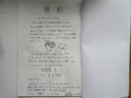 文芸部の部員の皆さんが、部誌「ねこじゃらし」が完成すると、校長室に届けに来てくれます。
