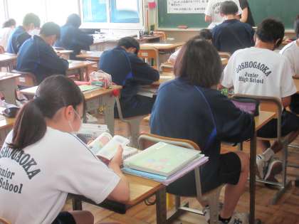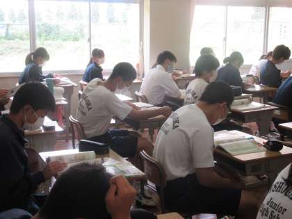 3年生の教室に朝の時間に訪問すると、時間の許す限りテスト対策をする生徒たちの姿が見られます。頑張ってほしいです!