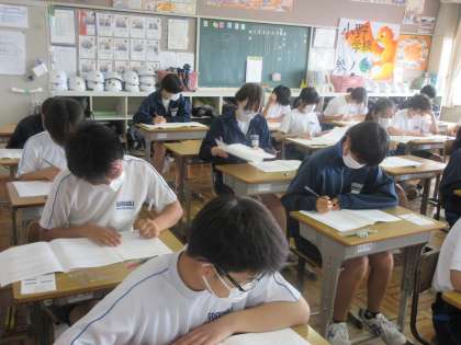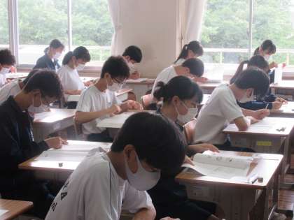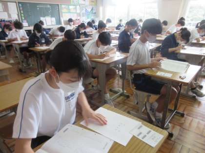 テスト問題に真剣に取り組む3年生。自分の進路も意識する時期になってきています。