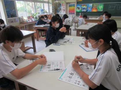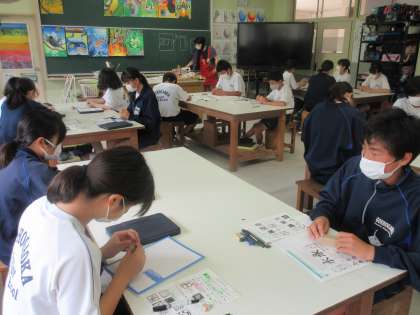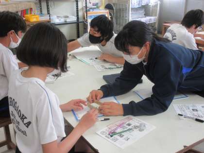 篆刻用の印材を手にした生徒たち。これからの作成が楽しみですね!