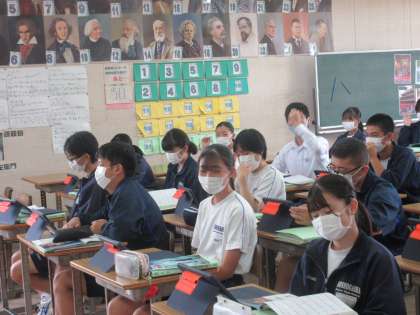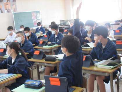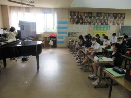曲を聴いて、「調が変わった時に手を挙げてね。」という先生からの指示に、1回目は、恐る恐る手を挙げる生徒たち。2回目は、自信をもって「ここだ!」と手を挙げていました。
