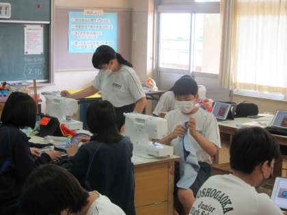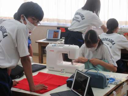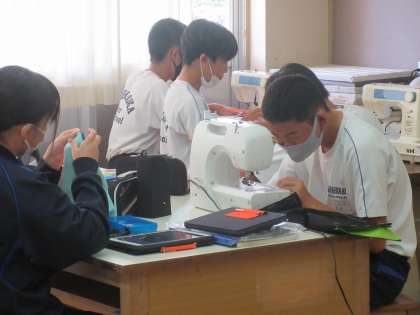 少しずつショルダーバックのかたちになってきた作品を見て、生徒たちは、ますますやる気が出てきているようです。