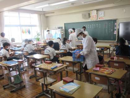 2年生の教室の準備風景です。自分たちで進んで準備に取り組むようすが見られました。