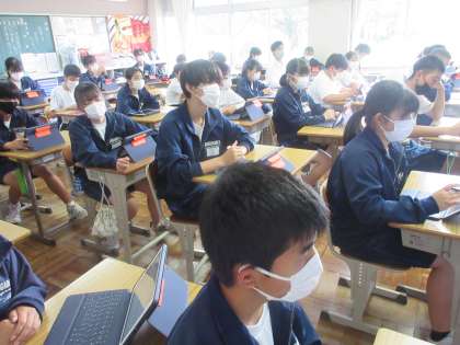 それぞれの教室で、真剣な表情で、話を聞く生徒たちの姿が見られました。