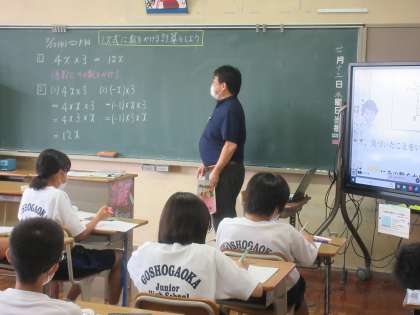 「(−X)×3=」の計算について、順序よく((−X)は−1×Xなど)計算することに大切さを学んでいました。