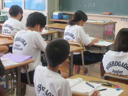 「一次式に数をかける」という課題にもと、ていねいに学習に取り組んでいました。