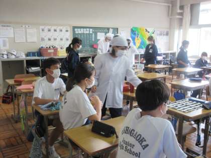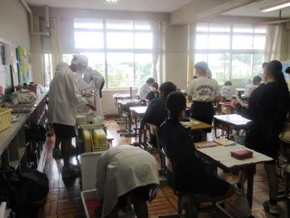 2年生の給食準備のようすです。てきぱきと準備に取り組む当番さん。頑張っていました。