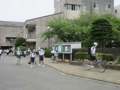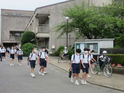 全生徒が一斉に下校になりましたが、正門を出る際には、一時停止し、安全に気を配り下校していきました。