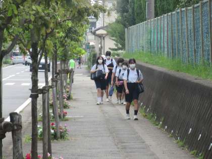 地域の皆様に見守られながら、今日も安全に登校しています。今日は、暑さが一段と増す予報が出ています。熱中症等の予防策を講じながら、充実した1日になるように、支援していきます。