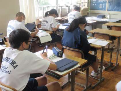 「密度を求める方法」について学習をしています。夏休み前の確認として、集中して問題に取り組んでいました。密度のイメージを定着させ、今後の学習に活かしていってほしいです。