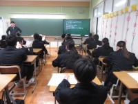 2次方程式の解を求める公式を考えていました。解の求め方について、「数学者」になった気持ちで熱心に、取り組んでいました。自然に近くの友達と自分の考えを交流する生徒たち。順序よく考えていました。