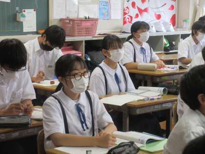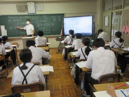 「−2X+3y=−6」について、「Xの移項・yの係数で割る」などのポイントをもとに、集中して学習に取り組んでいました。