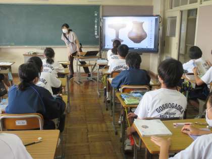 土器などの写真から、大昔の日本のイメージを広げていました。さらに、生徒たちが初めて見る出土したものの写真を見て、「何だろう?」と話し合っています。追究したいと思う授業づくり、大切にしたいです。