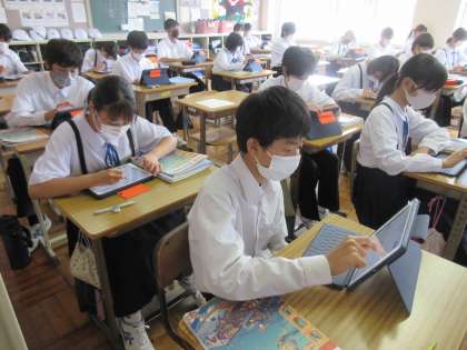 タブレットに書き込んだり、ポイントを記入したり、一人一人工夫した活用が進んでいます。