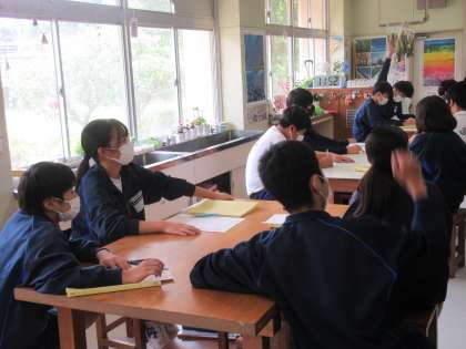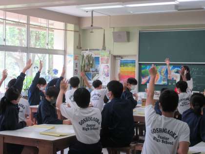2日に実施した前期期末テストが返されています。答え合わせや確認など、生徒たちは積極的に手を挙げ行っていました。難しい仏像の言葉も漢字で書いていたようです。
