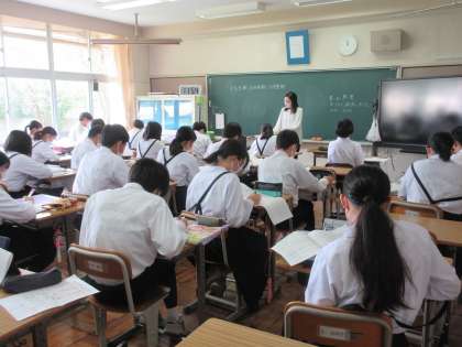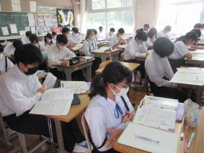 家庭科もテスト返しです。これまでの学習を教科書を振り返り確認していました。