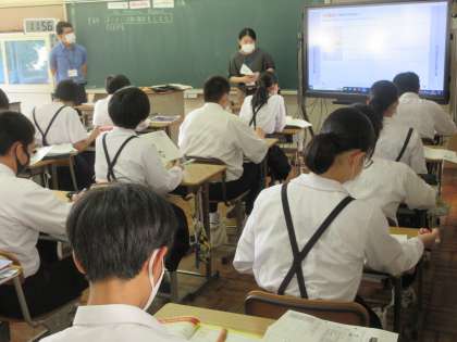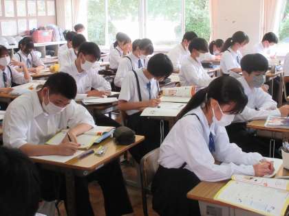 「よりよい活動を報告する」という課題のもと、部活動や委員会、行ってきたことなどを英文で書いています。自分のやってきたことをぜひ、英文で紹介してほしいです。