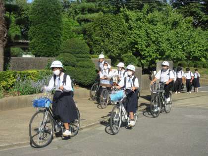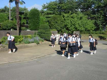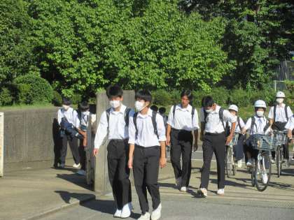 元気を登校してくる生徒たちですが、タオルで汗を拭う姿も見られます。