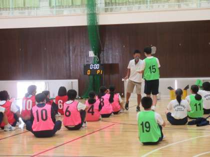 「ドライブショット」という本時の学習のポイントを確認し、いよいよ練習スタートです。