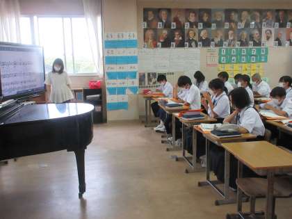 音楽の先生と楽譜をみながら、どうのように合唱するのか考えていました。