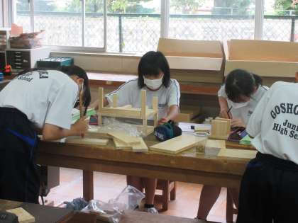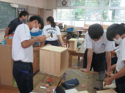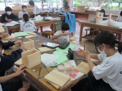 正確な作品作りに向け、今日はかなづち・きり・くぎを使って、組み立てる作業に取り組んでいました。