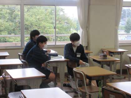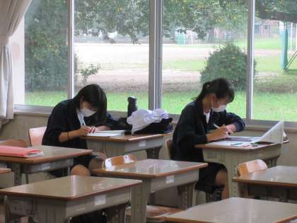 3年生の教室では、集中して問題を解くようすやデジタル教材を活用して復習するようすが見られました。明日のテストに向かって頑張っています!