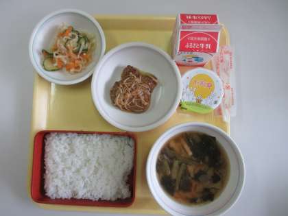 秋の空にひときわ美しい満月が見られる「十五夜」をイメージする給食です。テストに取り組む生徒たちにとって、「ほっ」とするメニューに思います。しっかり食べて、午後も頑張っていこう!