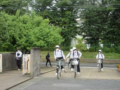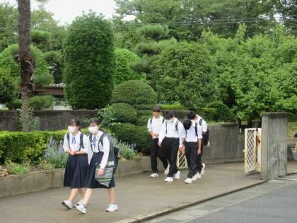 生徒たちが登校する時間には、雨もあがり、生徒たちはいつも通り元気に登校してきました。しっかりあいさつをして登校するする生徒たち。今日も1日、充実した生活が送ることができるように見守っていきます。