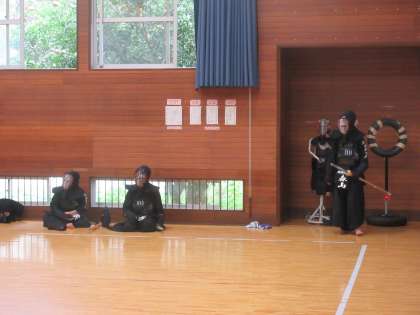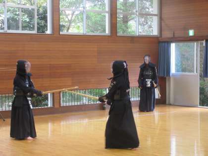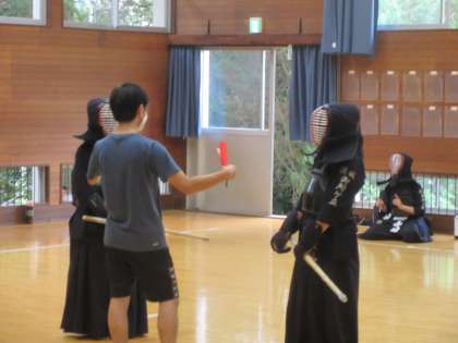 剣道部では、1本1本、集中して稽古をする姿が見られました。見ている生徒たちも真剣です。顧問の先生のアドバイスを受け、さらに気合いの入った声が武道場に全体に響き渡っていました。