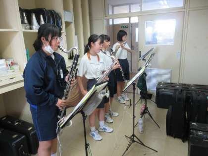 パートごとに真剣に、そして集中して、練習に取り組んでいます。パートごとの気持ちのこもった音が音楽室で響いています。