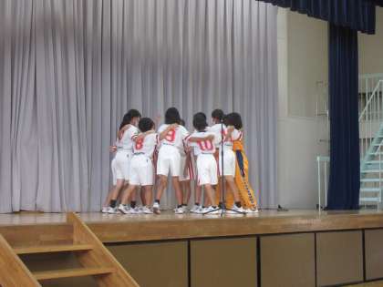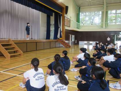 6時間目に、今週16日(金)から始まる新人大会・県南水泳大会(明日14日から始まる県南陸上大会)に向けて、学校全体で新人大会壮行会を実施しました。