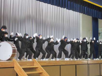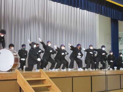 体育館だけでなく、オンラインでつながる教室と御所ケ丘中学校全ての仲間が、気持ちを合わせて手拍子をしました。