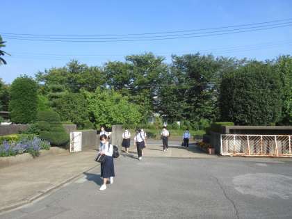 (正門に立っていると、先にあいさつをしてくれる生徒たちが多いです。進んであいさつをする姿勢を大切に伸ばしたいです。)