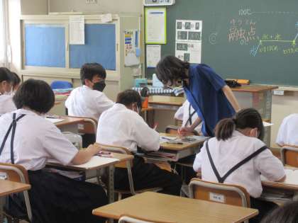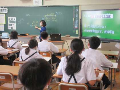 氷→水→水蒸気の状態変化を図に表しながら、イメージを広げています。融点などの新しい用語などにもふれながら、科学へ関心を高めていました。